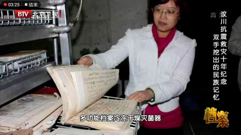 On May 10, 2018, Beijing Television's "Archives" program "memories of famous families dug up with both hands in commemoration of the 10th Anniversary of earthquake Relief in Wenchuan" told the story of rescuing the archives of the Qiang nationality in Beichuan 10 years ago and commemorating the earthquake relief in 2008 in many ways. Video link address:http://www.iqiyi.com/v_19rrddcn78.html